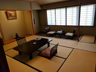 All the three hotels we stayed in featured traditional Japanese style rooms, with tatami mats and low tea tables, and indoor and outdoor hot spring ("onsen", as the Japanese call it) bath chambers. The hot springs came from natural sources but smelled no sulfuric odor and looked crystal clear clean. I took the "hot soup" dip every early morning for the first two days, then in the evening also for the last two days once I got addicted to it!